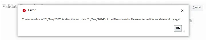 One common scenario is to ensure that the user-entered date falls within the start and end of the plan duration/window.
